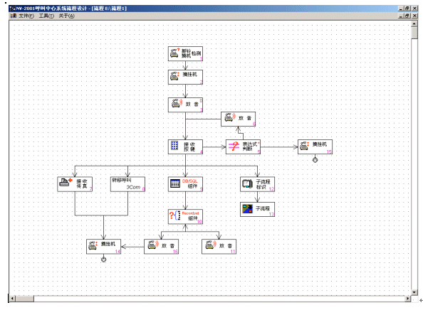 NV-IVR是一個(gè)使用方便、功能強(qiáng)大支持持續(xù)開(kāi)發(fā)的開(kāi)放式產(chǎn)品。NV-IVR運(yùn)用圖形化按鈕,直觀顯示各個(gè)子模塊的主題,使用者只要通過(guò)簡(jiǎn)單的拖曳、配置就可以生成一棵樹(shù)狀流程圖,直觀地對(duì)照IVR的實(shí)際運(yùn)行流程。用戶需要對(duì)實(shí)際流程進(jìn)行修改,只須對(duì)流程圖修建即可。NV-IVR可以完成以下一些主要功能: