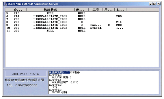 NBX呼叫中心的核心設(shè)備是3Com公司的NBX網(wǎng)絡(luò)交換機(jī),NBX網(wǎng)絡(luò)交換機(jī)支持開(kāi)放式電話開(kāi)發(fā)平臺(tái)TAPI2.X,TAPI它是Microsoft電話技術(shù)應(yīng)用程序編程界面標(biāo)準(zhǔn),運(yùn)用TAPI可以方便、高效地完成針對(duì)語(yǔ)音線路的控制開(kāi)發(fā),從而完成自動(dòng)語(yǔ)音應(yīng)答(IVR)、自動(dòng)話路分配(ACD)、以及坐席接待、計(jì)費(fèi)、錄音等需求。使用TAPI這種標(biāo)準(zhǔn)使得用戶可以集成第三方CTI程序以完成各種高級(jí)需求。