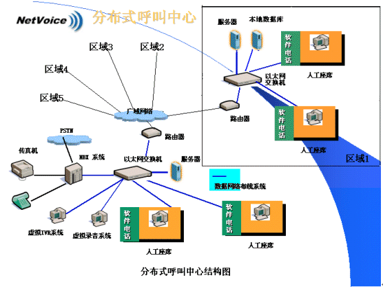 由于代理技能差異、語(yǔ)言差異、呼叫量的差異,以及客戶中心客戶所在地的變化及每個(gè)客戶對(duì)各自所擁有的用戶資料的保密性需求,分布式呼叫中心往往更適合各類企業(yè)的實(shí)際。分布式呼叫中心的建立,意味著需要在多個(gè)分中心之間進(jìn)行統(tǒng)一的呼叫控制及語(yǔ)音與同步數(shù)據(jù)轉(zhuǎn)移。NBX網(wǎng)絡(luò)交換機(jī)的引入,兩網(wǎng)合一的特性使分布式呼叫中心的建立成為了一件非常容易的事情。呼叫中心可以擴(kuò)展到多個(gè)位于不同地域的局域網(wǎng)上,通過(guò)路由選擇可以自動(dòng)地把呼叫(