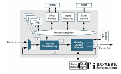 傳統(tǒng)的網(wǎng)絡(luò)處理器為了優(yōu)化報文分類和處理速度并節(jié)省內(nèi)存訪問帶寬,通常僅訪問數(shù)據(jù)包頭以獲得較高的轉(zhuǎn)發(fā)吞吐量,當(dāng)這類處理器進行深度數(shù)據(jù)包檢測(DPI),防火墻,網(wǎng)絡(luò)地址轉(zhuǎn)換(NAT),Netflow等復(fù)雜操作時,將會對性能造成不良影響。