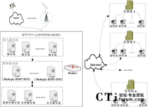 該培訓(xùn)學(xué)院遍布全國(guó)的124個(gè)辦事處,都通過(guò)IP網(wǎng)絡(luò)連接到學(xué)院的呼叫中心平臺(tái)之上,辦事處人員可以采用固定電話、移動(dòng)電話、IP電話等多種方式與呼叫中心平臺(tái)進(jìn)行通信,從而能夠直接接聽呼入來(lái)電,為客戶提供及時(shí)的服務(wù);另外還可以調(diào)用總部潛在客戶的有關(guān)數(shù)據(jù),進(jìn)行有針對(duì)性的客戶開發(fā)。
