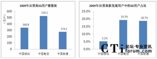 截止2009年12月底,三大運(yùn)營(yíng)商3G用戶數(shù)累計(jì)達(dá)到約1141萬戶,在移動(dòng)通信用戶中的占比為1.5%。在三大運(yùn)營(yíng)商中,中國(guó)電信3G用戶數(shù)最大,達(dá)到526.2萬;中國(guó)電信和中國(guó)聯(lián)通的新發(fā)展用戶中3G用戶相對(duì)較高,均在19%左右;中國(guó)移動(dòng)在3G用戶發(fā)展方面,暫時(shí)落后。