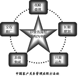通過對金融業(yè)應用案例的大量研究,CRCC發(fā)現(xiàn),只有將全流程先進管理和一體化客戶關系管理結合起來,才能保證金融企業(yè)在競爭和獲得關鍵客戶之后,具備為其提供貼身、增值金融服務、創(chuàng)新金融產(chǎn)品的能力。這套實施規(guī)則即“1+5”實施規(guī)則。