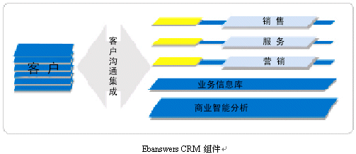 。。作為企業(yè)級客戶關(guān)系全面解決方案,Ebanswers CRM包含了可無縫整合又可獨立運行的三個功能組件:銷售,營銷,服務(wù)流程自動化軟件系統(tǒng);客戶溝通集成信息化方案;深層商業(yè)智能分析。其中客戶溝通層組體是Ebanswers