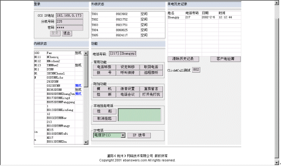 。。利用內(nèi)嵌的OCX控件,星際網(wǎng)絡(luò)已經(jīng)完全實現(xiàn)了在web頁面調(diào)用呼叫中心的功能,其主界面如下: