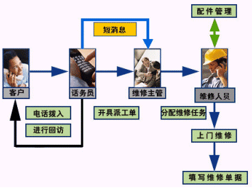 后臺客服應(yīng)用子系統(tǒng)建成后,客戶的投訴被自動導(dǎo)入,生成投訴單和維修單,自動轉(zhuǎn)發(fā)給維修部,安裝部等專業(yè)部門進(jìn)行處理,處理完后,系統(tǒng)會安排話務(wù)員進(jìn)行回訪,消費(fèi)者的處理意見和滿意度將被忠實(shí)地記錄下來,進(jìn)一步充實(shí)到客服數(shù)據(jù)庫中以指導(dǎo)企業(yè)的生產(chǎn)研發(fā)。