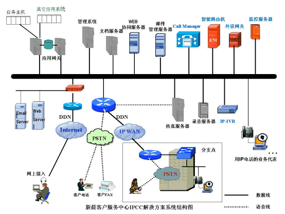 在IP技術(shù)應(yīng)用日益廣泛的今天,新晨集團(tuán)和著名網(wǎng)絡(luò)技術(shù)提供商-美國(guó)思科系統(tǒng)有限公司(CISCO)合作,推出了基于IP技術(shù)的CALL CENTER解決方案。該方案以CISCO IP CONTACT CENTER平臺(tái)為核心,簡(jiǎn)稱(chēng)IPCC。