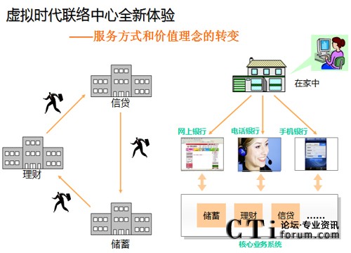 對(duì)于金融等高端行業(yè)應(yīng)用,聯(lián)絡(luò)中心的技術(shù)發(fā)展正逐步改變著銀行與客戶的“聯(lián)絡(luò)”格局和方式,通過新的“人機(jī)”(客戶與系統(tǒng))的實(shí)時(shí)交易,替代傳統(tǒng)的“人人”(客戶與員工面對(duì)面)柜臺(tái)交易模式,最終達(dá)到足不出戶,利用電子渠道瞬間完成交易,優(yōu)化客戶體驗(yàn)、提高業(yè)務(wù)效率,促進(jìn)金融業(yè)務(wù)發(fā)展的目的。