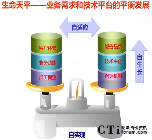“生命天平”所體現(xiàn)的聯(lián)絡(luò)中心運(yùn)營管理是一個(gè)動(dòng)態(tài)持續(xù)的過程,客戶體驗(yàn)、業(yè)務(wù)功能和員工期望是不斷變化的,這就要求平臺(tái)要具有生命力,要不斷滿足客戶和業(yè)務(wù)新的需求,能夠主動(dòng)的根據(jù)客戶體驗(yàn)提升服務(wù)品質(zhì),跟隨業(yè)務(wù)功能變化提升技術(shù)平臺(tái),結(jié)合員工期望,完善和改進(jìn)管理機(jī)制。使聯(lián)絡(luò)中心始終處于自生長、自適應(yīng)、自實(shí)現(xiàn)的平衡調(diào)節(jié)過程中。