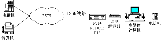 采用ISDN數字線路時,實現PSTN電話語音方式的連接圖如下: