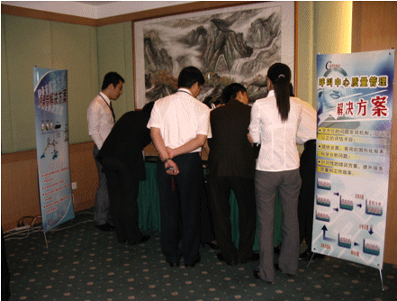 廣州站活動原定于5月18日舉行,但由于臺風(fēng)“珍珠”的影響延期。5月29日下午,“2006友鄰?fù)ㄓ嵑艚兄行漠a(chǎn)品巡展”廣州站會議在五星級酒店——廣東國際大酒店舉行。雖然當天陰雨連綿,但來自廣州、深圳、中山、佛山等城市的銀行、保險、政府、航空、企業(yè)等行業(yè)的呼叫中心運營管理專家和領(lǐng)導(dǎo)還是冒雨準時出席了此次活動。