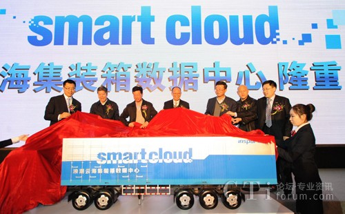 圖:參加發(fā)布會(huì)的領(lǐng)導(dǎo)嘉賓為云海集裝箱數(shù)據(jù)中心模型揭幕