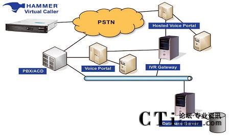 Hammer On-Call IVR測(cè)試關(guān)注呼叫中心的自助服務(wù)技術(shù),以運(yùn)營(yíng)商網(wǎng)絡(luò)為起點(diǎn)和包括從PSTN接受電話呼叫的PBX/ACD系統(tǒng)、處理電話呼叫的IR(自動(dòng)應(yīng)答系統(tǒng))或Voice Portal(語音門戶)、載有面向用戶型業(yè)務(wù)的業(yè)務(wù)服務(wù)器(如VXML)、用于語音激活型業(yè)務(wù)的語音識(shí)別引擎或者是處理DTMF業(yè)務(wù)的DTMF收集器、文本轉(zhuǎn)換成語音的資源、和用于支持自助服務(wù)環(huán)境下運(yùn)行業(yè)務(wù)的所有后臺(tái)系統(tǒng)。
