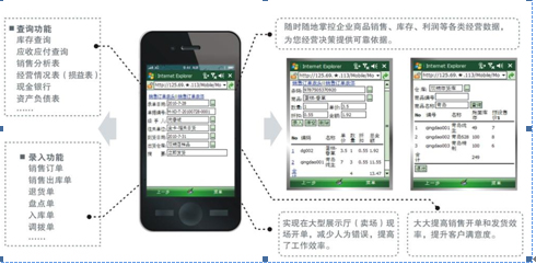 應(yīng)時(shí)代潮流和中小企業(yè)對(duì)移動(dòng)商務(wù)應(yīng)用的需求,自2010年,任我行軟件公司開(kāi)始研發(fā)針對(duì)中小企業(yè)的移動(dòng)商務(wù)系統(tǒng),幾經(jīng)探索之后,于2011年推出了穩(wěn)定、安全、應(yīng)用流暢的管家婆手機(jī)版。通過(guò)管家婆手機(jī)版,管家婆軟件用戶可以通過(guò)終端設(shè)備(手機(jī)、PDA或數(shù)據(jù)采集器)上網(wǎng),訪問(wèn)管家婆軟件后臺(tái)系統(tǒng),隨時(shí)隨地處理業(yè)務(wù),查詢各種經(jīng)營(yíng)數(shù)據(jù)。基于用戶操作習(xí)慣,管家婆移動(dòng)商務(wù)分為B/S版和C/S版,其移動(dòng)系統(tǒng)的應(yīng)用涵蓋了OA、查詢報(bào)表、審核、簡(jiǎn)單錄入以及快速錄單、掃描錄入等多個(gè)方面,所有的數(shù)據(jù)自動(dòng)與系統(tǒng)實(shí)時(shí)同步。移動(dòng)商務(wù)幫助企業(yè)擺脫時(shí)間、空間、地點(diǎn)的辦公限制,讓用戶可以隨時(shí)隨地靈活處理相關(guān)工作。