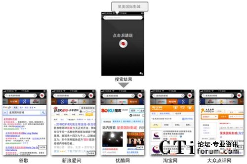 適用于iPhone™、iPad™和iPod touch™的聲龍搜索(Dragon Search)同時(shí)也在蘋果 App Store推出,為用戶提供強(qiáng)大的語音搜索功能;谠摦a(chǎn)品,用戶只需說出自己的搜索要求,便可通過移動(dòng)網(wǎng)絡(luò)找到相應(yīng)的信息和答案。 另外,聲龍搜索(Dragon Search)創(chuàng)新的搜索功能界面(Dragon Search Carousel)還可以支持用戶同時(shí)訪問包括谷歌、新浪愛問、優(yōu)酷網(wǎng)、淘寶網(wǎng)和大眾點(diǎn)評(píng)網(wǎng)等多個(gè)熱門網(wǎng)站和搜索引擎,并在幾秒鐘內(nèi)獲得來自多個(gè)內(nèi)容來源的搜索結(jié)果。