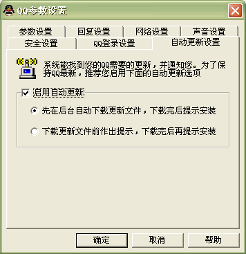 在QQ 2003中新增加了一項自動更新的功能,這樣在騰訊推出新版QQ之后,可以自行進行下載和安裝,省去用戶麻煩。