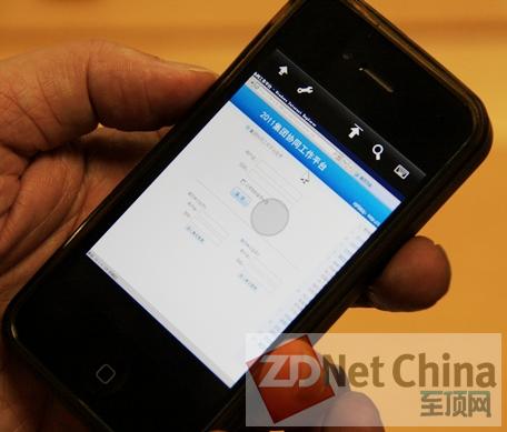 圖:阮闖用自己的iPhone手機(jī)演示登錄集團(tuán)的信息化平臺非常方便。