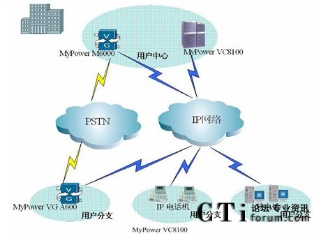 在用戶中心部署MyPower VC8100 IP通信服務(wù)器,同時部署MyPower M6000媒體網(wǎng)關(guān),在用戶分支機(jī)構(gòu)部署邁普公司小型媒體網(wǎng)關(guān)、IP電話機(jī)及軟電話,構(gòu)建以SIP協(xié)議為基礎(chǔ)的高擴(kuò)展性VOIP協(xié)同通信平臺。