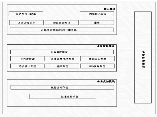 另外從CTI技術和呼叫中心的角度來看,也應當實現(xiàn)適當線路數(shù)的自動語音應答(IVR)功能,呼叫/業(yè)務處理數(shù)據(jù)的統(tǒng)計功能,電話錄音留言功能,對主叫用戶和被叫信息號碼的有效性進行檢查的功能,系統(tǒng)管理維護功能等才能構成一個完整的呼叫中心系統(tǒng)。