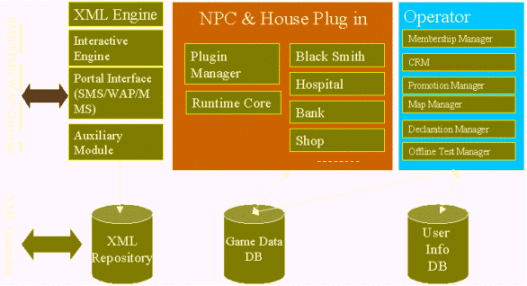 基于上述的因素,北京市萬(wàn)隆然博科技有限責(zé)任公司率先在國(guó)內(nèi)推出了無(wú)線互連游戲平臺(tái),把游戲的快速開(kāi)發(fā)、游戲的運(yùn)行引擎和游戲的客戶服務(wù)管理集成在一體。方便了短訊運(yùn)營(yíng)商的運(yùn)營(yíng)。同時(shí),然博科技通過(guò)分析各類游戲的特點(diǎn)和無(wú)線交互方式的特點(diǎn)。具有獨(dú)創(chuàng)性的推出了一種游戲描述XML格式。通過(guò)然博科技提供的離線工具,游戲策劃人可以自己編寫(xiě)腳本,自己定義場(chǎng)景,進(jìn)行仿真。同時(shí),上傳到實(shí)際運(yùn)行的服務(wù)器端。真正的實(shí)現(xiàn)了短信門戶的個(gè)人創(chuàng)作工具。使得短信門戶真正的可以與傳統(tǒng)的Web門戶有相同的運(yùn)營(yíng)模式。ICP可以通過(guò)出賣短信服務(wù)器的硬盤空間來(lái)實(shí)現(xiàn)與內(nèi)容宿主共同盈利的模式。