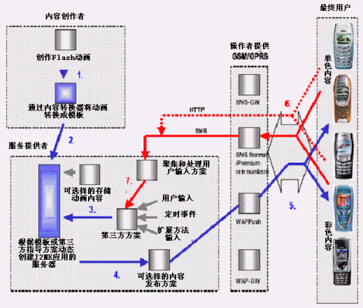 通過目前的2/2.5G網(wǎng)絡(luò)傳輸,運(yùn)行Flash動畫轉(zhuǎn)換成的應(yīng)用程序不需要在手機(jī)上安裝特別的播放器軟件,只需要支持Java技術(shù)。 該方案可以用現(xiàn)有的網(wǎng)絡(luò)和J2ME設(shè)備,使用戶提前進(jìn)入多彩的無線世界,給用戶一個新的選擇。