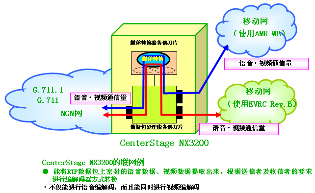 NX3200(以下簡稱「NX3200」)」上,內(nèi)置了行業(yè)首例運(yùn)營商級寬帶編解碼轉(zhuǎn)換功能。本裝置迅速對應(yīng)了ITU-T(注2)制定的國際標(biāo)準(zhǔn)G.711.1(注3)等寬帶編解碼器標(biāo)準(zhǔn),在運(yùn)用移動(dòng)網(wǎng)、固定網(wǎng)的各種語音編解碼器及視頻編解碼器之間,能同時(shí)進(jìn)行大容量通信。本產(chǎn)品即日起開始銷往市場。