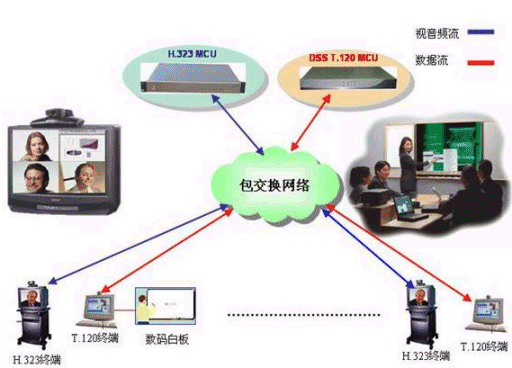 DSS系統(tǒng)可以和任何符合H.320/H.323標準的MCU配合,實現(xiàn)會議電視系統(tǒng)中的數(shù)據(jù)功能。