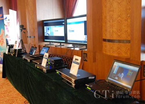 會(huì)場內(nèi)部搭建了產(chǎn)品展示區(qū),用4臺(tái)46寸顯示器,分別顯示分布式錄播系統(tǒng)(Beyonsys、powolive)平臺(tái),Beyonsys導(dǎo)播平臺(tái),接收導(dǎo)播后直播畫面;另用ipad接收直播,展示了桌面一體機(jī)、模塊化一體機(jī)、解碼器等相關(guān)產(chǎn)品。