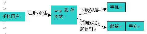 用戶通過手機(jī)注冊(cè)我們的另一項(xiàng)服務(wù)--"無(wú)限郵"業(yè)務(wù),可以得到我們?yōu)榭蛻魷?zhǔn)備的手機(jī)郵箱系統(tǒng),通過這個(gè)系統(tǒng)用戶能夠?qū)崿F(xiàn)用手機(jī)終端完成郵件的收發(fā)功能,更重要的是用戶可以以這套系統(tǒng)為中介實(shí)現(xiàn)多媒體信息的從網(wǎng)站的下載和對(duì)手機(jī)終端的發(fā)送。
