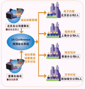 在會(huì)議中,副總經(jīng)理使用電子白板向各位主管說(shuō)明了公司的整體規(guī)劃,上海分公司經(jīng)理還通過(guò)程序共享功能,將自己寫(xiě)的某地市場(chǎng)開(kāi)拓規(guī)劃書(shū)初稿共享出來(lái),與所有與會(huì)者討論;