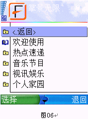 4.現(xiàn)在此軟件支持的媒體網(wǎng)站只有"掌景無(wú)限",估計(jì)以后隨著肥 6 用戶及在線視頻播放功能的普及,類似的網(wǎng)站會(huì)更多,打開(kāi)"掌景無(wú)限",則系統(tǒng)會(huì)提示你所選擇的連接接入點(diǎn),