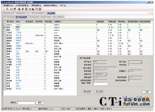 系統(tǒng)提供話費(fèi)的預(yù)算控制和預(yù)存控制(押金管理)功能,用戶可以選擇使用其中一種或都不使用,當(dāng)電話費(fèi)用達(dá)到設(shè)定的費(fèi)用金額,系統(tǒng)按照設(shè)定的處理方式(降低分機(jī)撥打電話的等級)進(jìn)行。