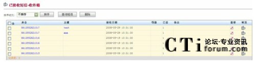 通過Web方式的客戶端收取用戶發(fā)來的短信,可以按日期時(shí)間、主題、內(nèi)容、主叫號碼等進(jìn)行查詢和排序;將收到的短信轉(zhuǎn)發(fā)給其它個(gè)人手機(jī)或用戶群;