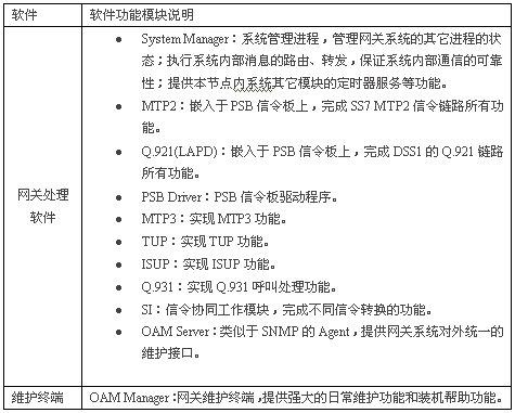 整個PSG信令轉(zhuǎn)換網(wǎng)關的軟件由系統(tǒng)支持軟件和網(wǎng)關處理軟件組成,具體見下表: