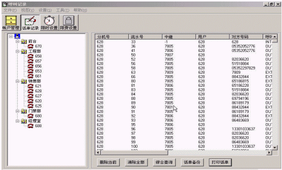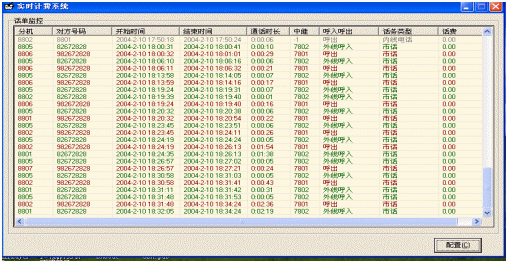 實(shí)時(shí)計(jì)費(fèi)系統(tǒng)不但對與外線接通的呼叫進(jìn)行記錄,同時(shí)對內(nèi)線之間的呼叫、未接通的呼叫進(jìn)行記錄,并且在發(fā)生轉(zhuǎn)接的情況下,分別對不同分機(jī)做呼叫記錄。