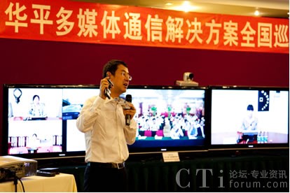 華平股份總經(jīng)理劉曉露先生發(fā)表了“AVCON 多媒體通信系統(tǒng)解決方案”的演講并穿插了精彩的產(chǎn)品演示。在現(xiàn)場演示中,華平新推出的無線視頻終端大放異彩,基于3G網(wǎng)絡環(huán)境傳輸?shù)綍䦂龅牧鲿、艷麗的高清視頻,技驚全場。