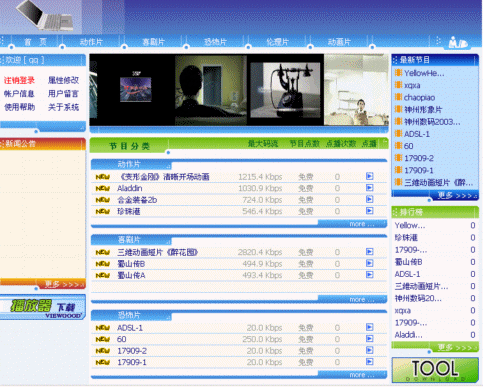 隨著互聯(lián)網(wǎng)在中國的普及和網(wǎng)絡(luò)基礎(chǔ)建設(shè)的完善,越來越多的人開始上網(wǎng),隨之而來的就是各種網(wǎng)絡(luò)服務(wù)的大行其道,我們就來看看最近很火的網(wǎng)絡(luò)視頻點(diǎn)播VOD。領(lǐng)導(dǎo)下命令,對(duì)目前視頻點(diǎn)播產(chǎn)品做一個(gè)評(píng)估,沒有辦法,只有照辦。既然要評(píng)論自然要找最好的來感受一下。南京遠(yuǎn)古的Web VOD5.0。在技術(shù)上較為領(lǐng)先,根據(jù)南京遠(yuǎn)古官方宣布,該系統(tǒng)可以達(dá)到1000并發(fā)。十分好奇,終于托人找到了體驗(yàn)版本。