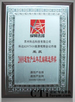 科達(dá)KDV7910獲2009年度“編輯選擇獎(jiǎng)”