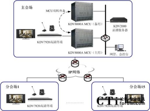 在充分了解用戶應(yīng)用需求的基礎(chǔ)上,2011年初科達(dá)為青島工商局規(guī)劃部署了一套高清視頻會議系統(tǒng)。其中,為了進(jìn)一步提升用戶的遠(yuǎn)程溝通體驗和交互感,科達(dá)在市局主會場部署了1臺KDV7920高清視頻會議終端,在下屬14個分(市)局以及工商所分會場則各部署了1臺KDV7820高清視頻會議終端;而考慮到青島工商對于系統(tǒng)安全性、穩(wěn)定性方面的較高要求,科達(dá)則為其部署了 2臺KDV8000A多點控制單元(MCU)以實現(xiàn)雙機(jī)熱備;此外,系統(tǒng)還部署了KDV2000錄播服務(wù)器,以實現(xiàn)會議、培訓(xùn)過程的錄像和點播。整個系統(tǒng)通過工商局內(nèi)部的專網(wǎng)實現(xiàn)視音頻溝通和數(shù)據(jù)共享。