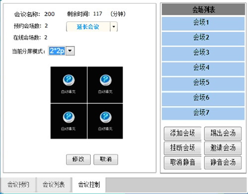 添加一個會場到當(dāng)前會議當(dāng)中。點擊“添加會場”按鈕,會出現(xiàn)彈屏,雙擊會場完成添加。