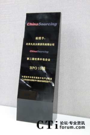 CTI論壇(ctiforum)06月16日消息: 日前,從國家工業(yè)和信息化部傳來喜訊:北京九五太維資訊有限公司2009年蟬聯(lián)“中國BPO企業(yè)10強”。