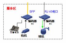 道路沿線監(jiān)控:采用EPON組網(wǎng),路況監(jiān)控球機(jī)接入前端編碼器,多個(gè)編碼器通過(guò)一根EPON光纖接入到中心交換機(jī)上,布線方便節(jié)省光纖資源。編碼器內(nèi)置交換機(jī)功能可以接入IP報(bào)警電話方便公路報(bào)警。還可以將支持IP接口的可變信號(hào)板和氣象站直接接入編碼器交換機(jī)端口,實(shí)現(xiàn)一網(wǎng)多用,降低整體網(wǎng)絡(luò)成本。