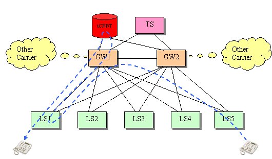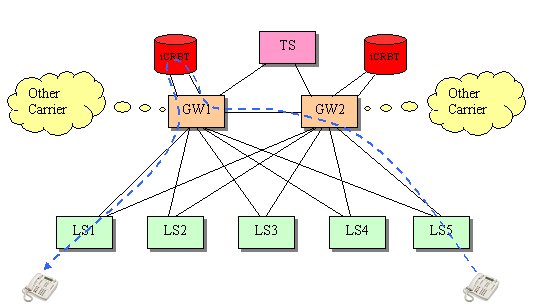 圖5 每個端局交換機配置一套iCRBT系統(tǒng)(有迂回)