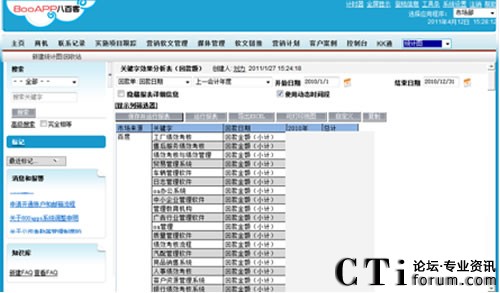 “廣撒網(wǎng)式的企業(yè)營(yíng)銷方式很難找到真正的目標(biāo)客戶,而利用搜索引擎則更貼近客戶的主觀需求,通過(guò)投放關(guān)鍵詞,讓目標(biāo)客戶主動(dòng)出現(xiàn)。”李淼在演講中指出,“企業(yè)通過(guò)百度后臺(tái)可以看到每個(gè)關(guān)鍵字花了多少錢,被點(diǎn)擊了多少次,但卻無(wú)法統(tǒng)計(jì)關(guān)鍵字所帶來(lái)的收入。為了更好的達(dá)到關(guān)鍵詞廣告投入效果,八百客800APP—CRM系統(tǒng)與百度API接口對(duì)接,實(shí)現(xiàn)集成,這樣便可以輕松獲知客戶的關(guān)鍵字來(lái)源。通過(guò)800APP后臺(tái)系統(tǒng)所做的統(tǒng)計(jì)報(bào)表,可以清晰的看到通過(guò)哪個(gè)關(guān)鍵字獲得多少注冊(cè)客戶、多少成交客戶、多少匯款額,然后綜合對(duì)比每個(gè)關(guān)鍵詞的性價(jià)比,關(guān)掉不賺錢的關(guān)鍵字,將錢花在賺錢的關(guān)鍵字上。而且根據(jù)800APP系統(tǒng)所做的統(tǒng)計(jì)數(shù)據(jù),可以做出市場(chǎng)投入與產(chǎn)出的預(yù)期增長(zhǎng)曲線。通過(guò)800APP系統(tǒng)與百度集成,可以輕松達(dá)到市場(chǎng)投入不變,效果成倍增長(zhǎng)的目的。”