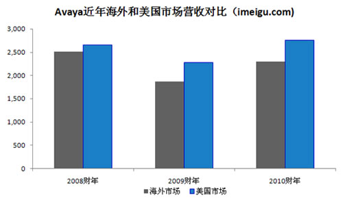 2008、2009、2010財(cái)年Avaya總營收分別為49.23億美元、41.50億美元、50.60億美元,2009財(cái)年?duì)I收受宏觀經(jīng)濟(jì)(金融海嘯)因素影像而出現(xiàn)15.7%的下降,2010財(cái)年Avaya公司收購原北電的企業(yè)通信部門(NES),受此合并報(bào)表影響和經(jīng)濟(jì)復(fù)蘇因素,2010財(cái)年?duì)I收相比2009財(cái)年增長21.9%。