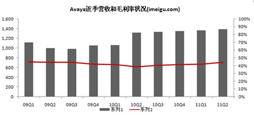 Avaya營收由產(chǎn)品銷售收入和服務(wù)收入構(gòu)成,其中產(chǎn)品包括統(tǒng)一通信(將視頻,語音、傳真、電子郵件、WEB,移動(dòng)短消息和多媒體數(shù)據(jù)等所有信息類型集合為一體)、聯(lián)絡(luò)中心、中小企業(yè)通訊和數(shù)據(jù)網(wǎng)絡(luò)解決方案,產(chǎn)品銷售分別占2009、2010財(cái)年總營收的46%、51%。服務(wù)收入主要來自相關(guān)產(chǎn)品的維護(hù)、支持和設(shè)計(jì)整合等專業(yè)性服務(wù)。隨著新產(chǎn)品的繼續(xù)推出和企業(yè)通信開支的增長,Avaya將在已有客戶基數(shù)上進(jìn)一步取得營收的增加。