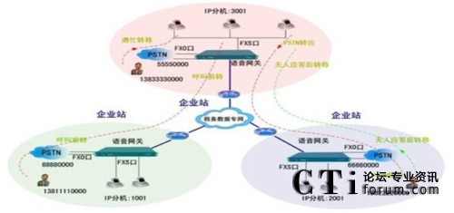 - IP分機之間的呼叫時,可以實現分機內部或向PSTN側的呼叫轉移功能。