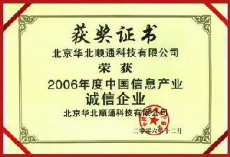 2007年1月16日,由中國計算機(jī)用戶協(xié)會(簡稱CCUA)主辦的“中國計算機(jī)用戶協(xié)會2006年度企業(yè)及產(chǎn)品推介頒獎大會” 在北京世紀(jì)金源大飯店隆重召開,通過對中國境內(nèi)從事IT產(chǎn)品生產(chǎn)、銷售、集成和服務(wù)企業(yè)的經(jīng)營規(guī)模、服務(wù)能力、產(chǎn)品使用效果、企業(yè)誠信和持續(xù)發(fā)展能力等多項指標(biāo)進(jìn)行綜合評定,揭曉了中國信息產(chǎn)業(yè)2006年度優(yōu)秀企業(yè)評選與產(chǎn)品推介活動結(jié)果。華北工控憑借其在業(yè)內(nèi)深入人心的影響,再次獲得“2006年度中國信息產(chǎn)業(yè)誠信企業(yè)獎”和“2007年度中國信息產(chǎn)業(yè)行業(yè)采購首選品牌”。