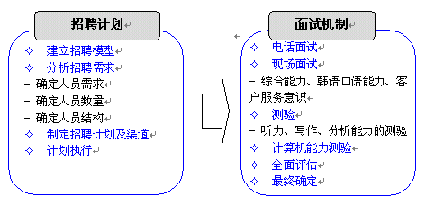 東軟呼叫中心充分挖掘東北地區(qū)豐富的韓語(yǔ)人才資源,通過多種招聘渠道滿足項(xiàng)目的人才需求。東軟自身的教育機(jī)構(gòu)--東軟信息學(xué)院也可以培養(yǎng)專業(yè)的韓語(yǔ)人才,另外,東軟信息學(xué)院與韓國(guó)某大學(xué)進(jìn)行戰(zhàn)略合作,通過為韓國(guó)留學(xué)生提供呼叫中心實(shí)習(xí)機(jī)會(huì)及漢語(yǔ)培訓(xùn)等,方式,吸引數(shù)名高素質(zhì)韓國(guó)大學(xué)生加入呼叫中心,充分滿足該項(xiàng)目對(duì)專業(yè)人才的需求。