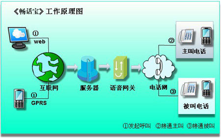 具體來講就是在手機里安裝“暢話寶”應(yīng)用軟件(在計算機桌面提供web客戶端),該軟件帶有通信錄和觸發(fā)GPRS的功能,可以通過無線互聯(lián)網(wǎng)將電話號碼發(fā)送到平臺,通過PSTN發(fā)起通話(2方或多方)。這個手機客戶端軟件,可無縫對接到固網(wǎng)增值業(yè)務(wù)平臺上(多方通信平臺)。客戶端軟件自身攜帶有通信錄功能,調(diào)用方便。部分機型可調(diào)用手機本身的通信錄。